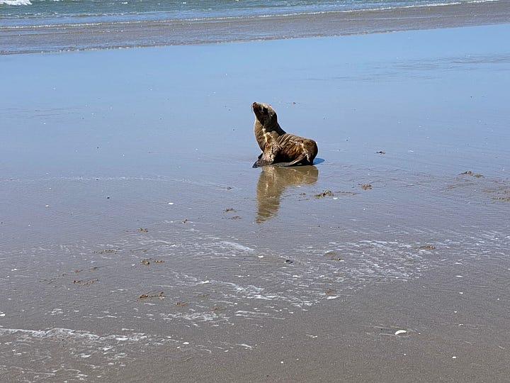 Today, Critters, where earth meets sky, where the waves lap upon the shore, where the fresh salty air oxygenates our lungs, we encounter a special pup closely related to a canine, but of a completely different branch of the evolutionary tree. We bring to you a wild encounter, although fleeting before a return to the ocean depths, and ponder the wonder of how closely related dogs and seals are to each other. Please, join us for sun and surf and excellent critter kinship conversation.