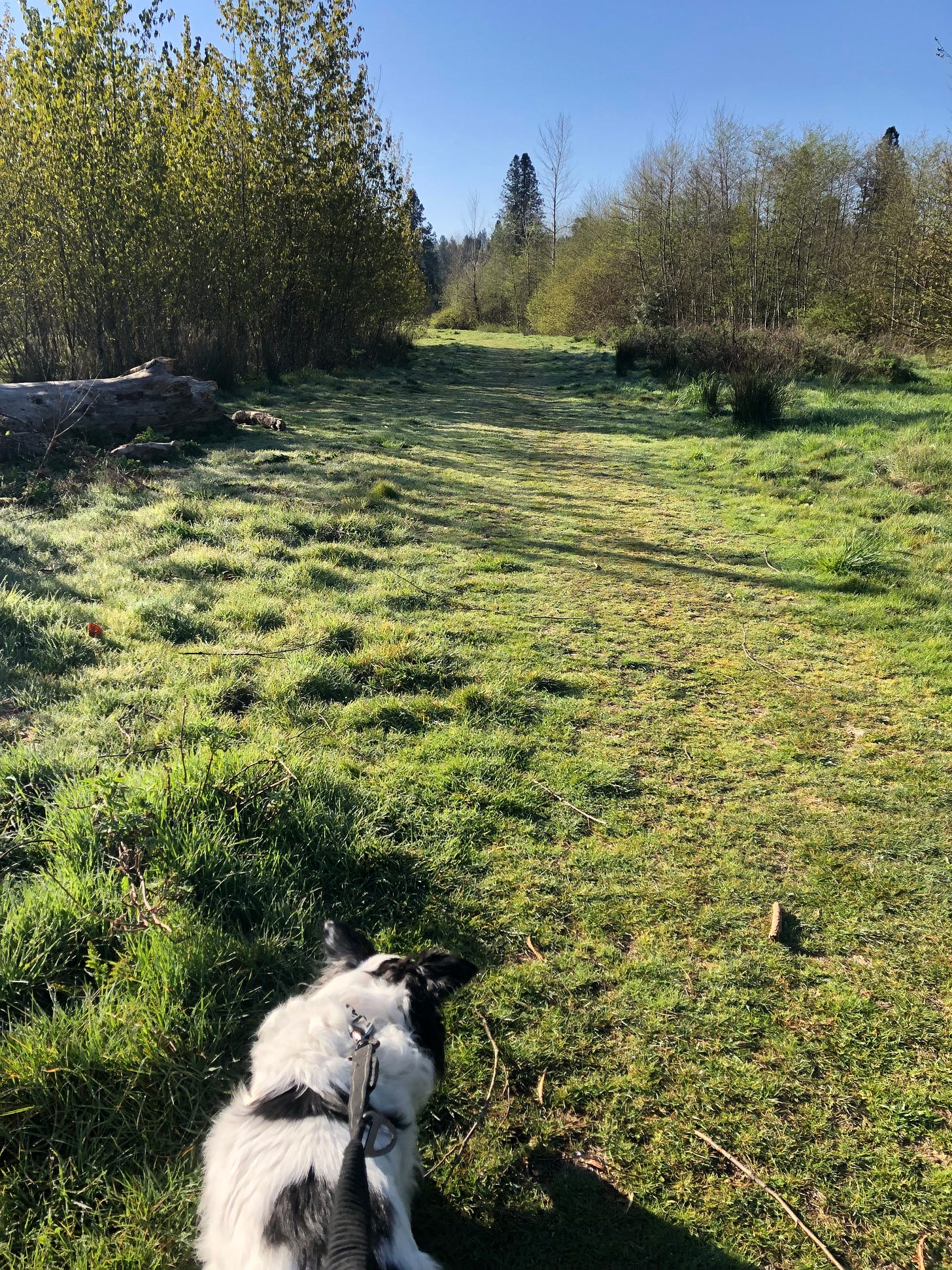 Heidi: Hello and welcome welcome, Friends! We are rapidly making canine dietary adjustments here at the Condo and on our Walkabouts! We have returned home just moments ago from our Springtime morning nature walk, the light full of contrast, filtered through leaden clouds and breaks of blue, the trail wide and inviting and damp from an overnight rain. For we have travailed the path unwinding, this neighborhood former golf course now ripe for green forest bathing in the rewilding of the land.