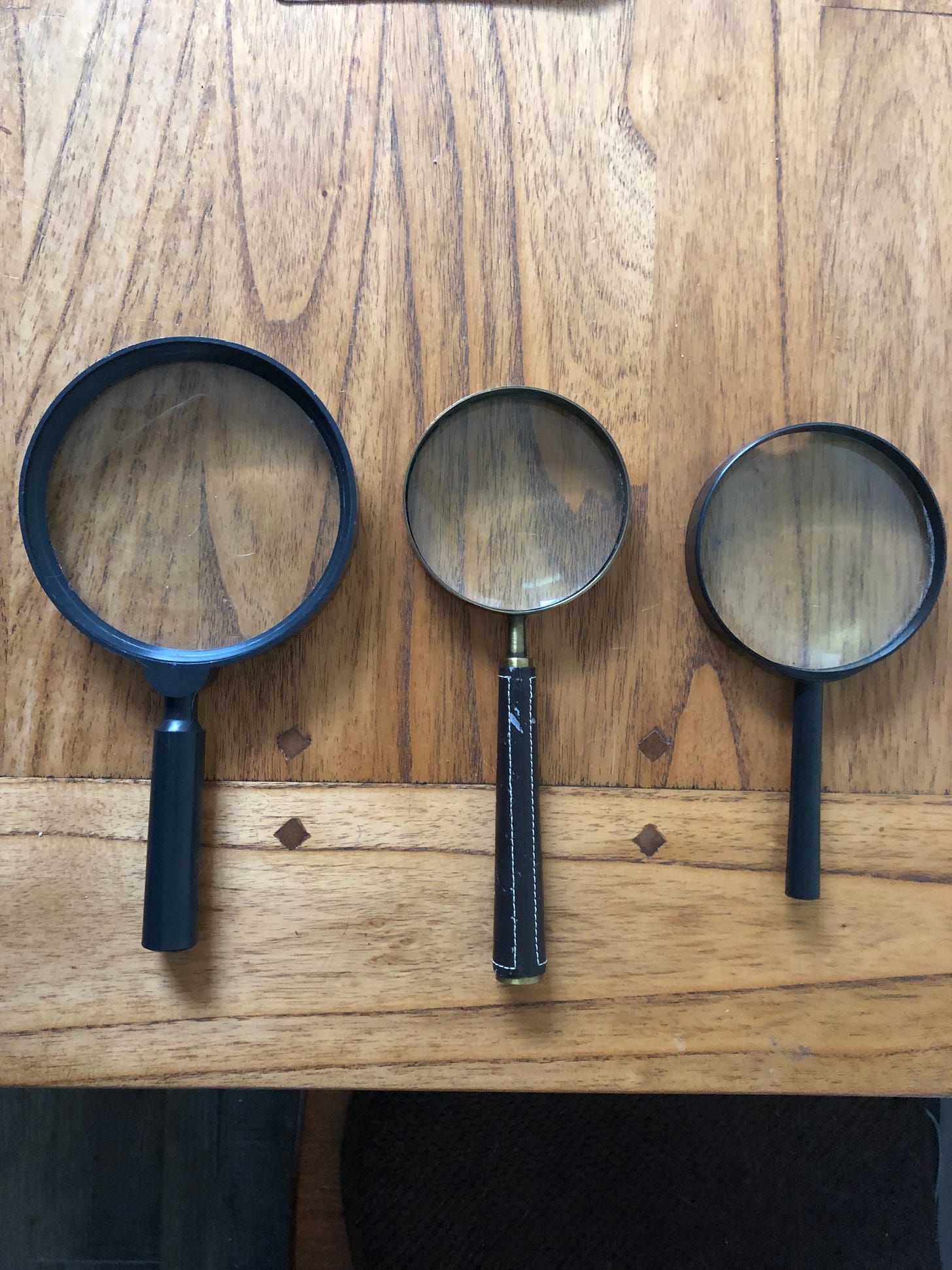 Chris: Ready. But don’t we need flashlights to go with the magnifying glasses?