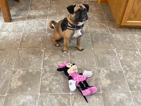 Chris: It’s from Kermit! He went back to his home in the Mountains and is rapidly adjusting to the altitude. He says he went higher and higher in order to rescue his beloved Minnie Mouse from the top of the Hooman’s headboard. They are well oxygenated and enjoying each other’s company and will return to Conversations with Critters due to popular demand. The end.